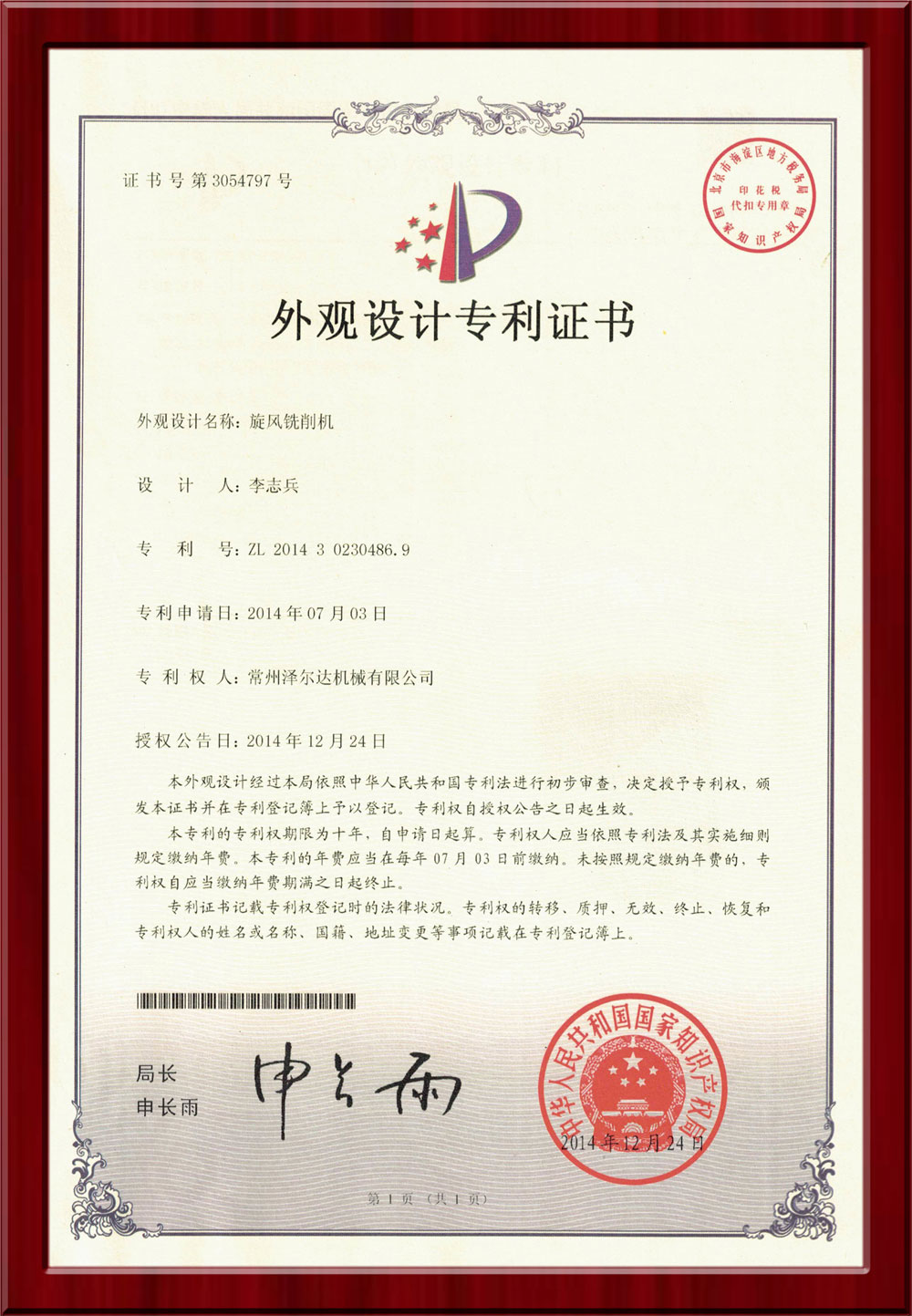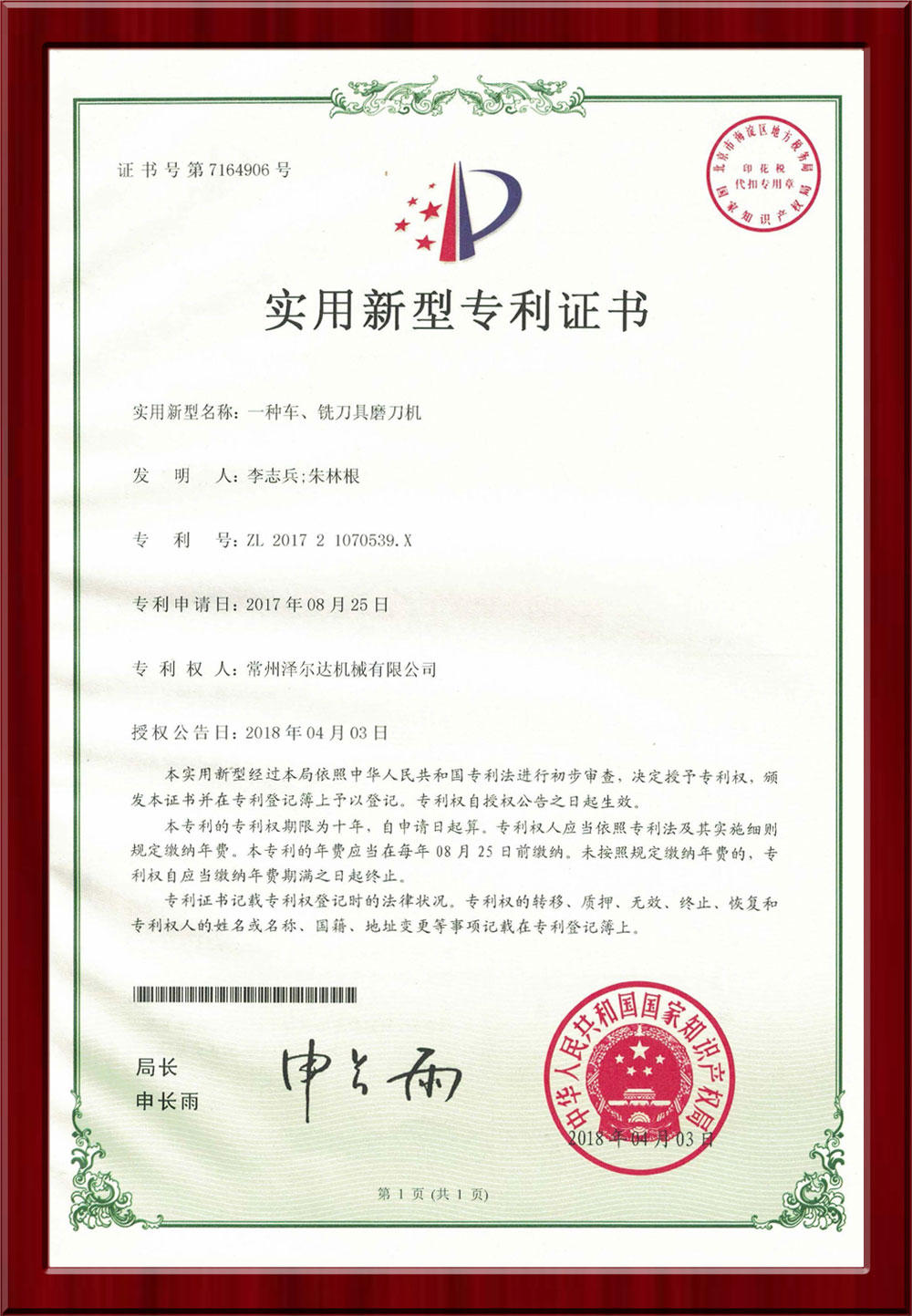 • 專利證書/