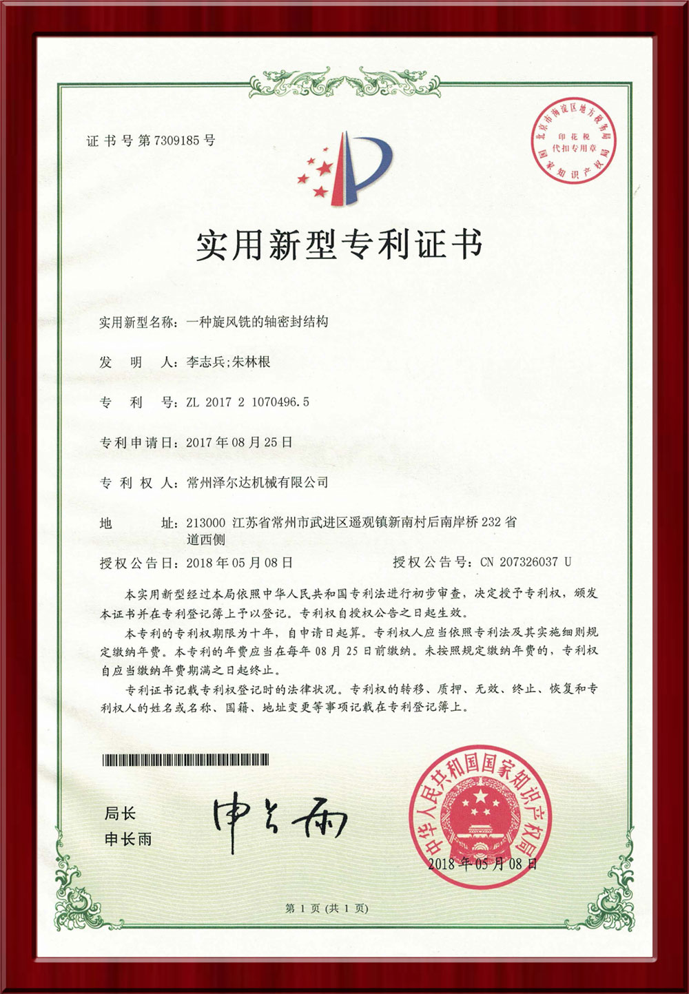 • 7309185實用新型專利