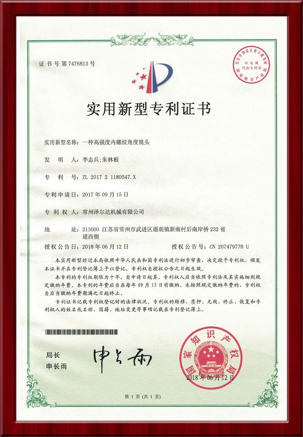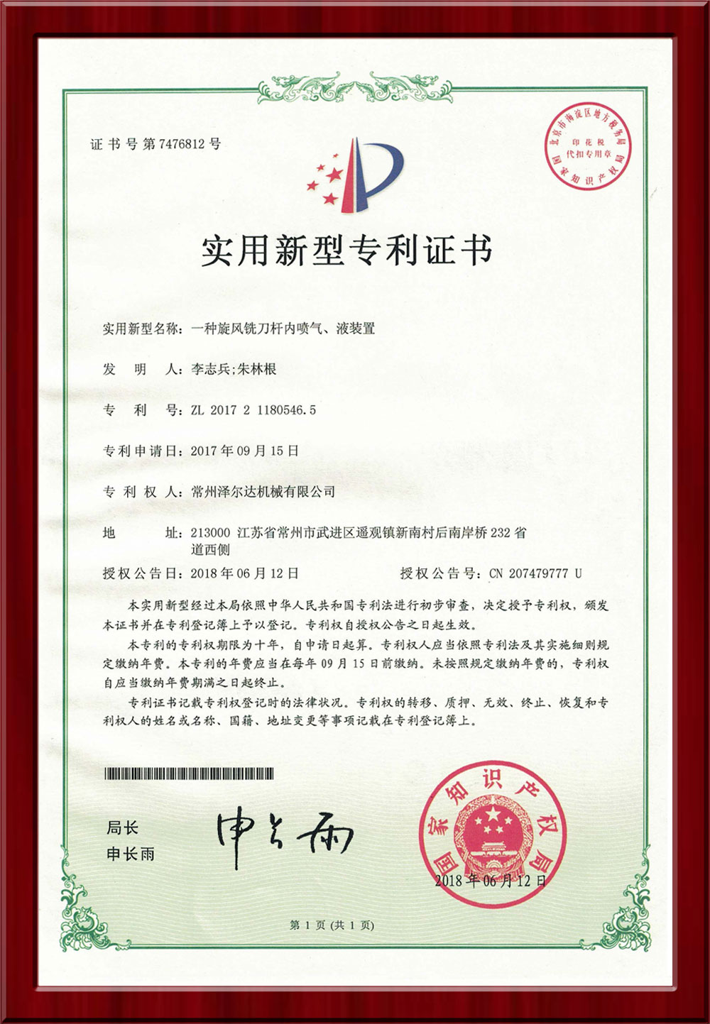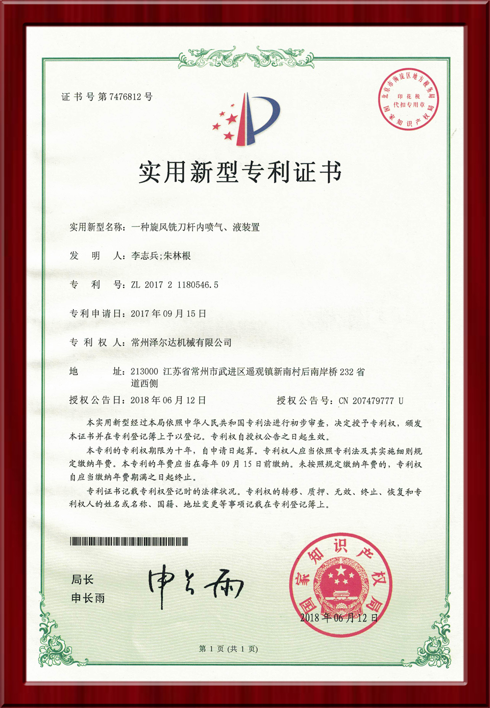 • 7476812實用新型專利